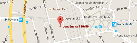 Sídlíme v centru Prahy - Londýnská 730/59 - v blízkosti stanic metro "Náměstí Míru" a "I. P. Pavlova"